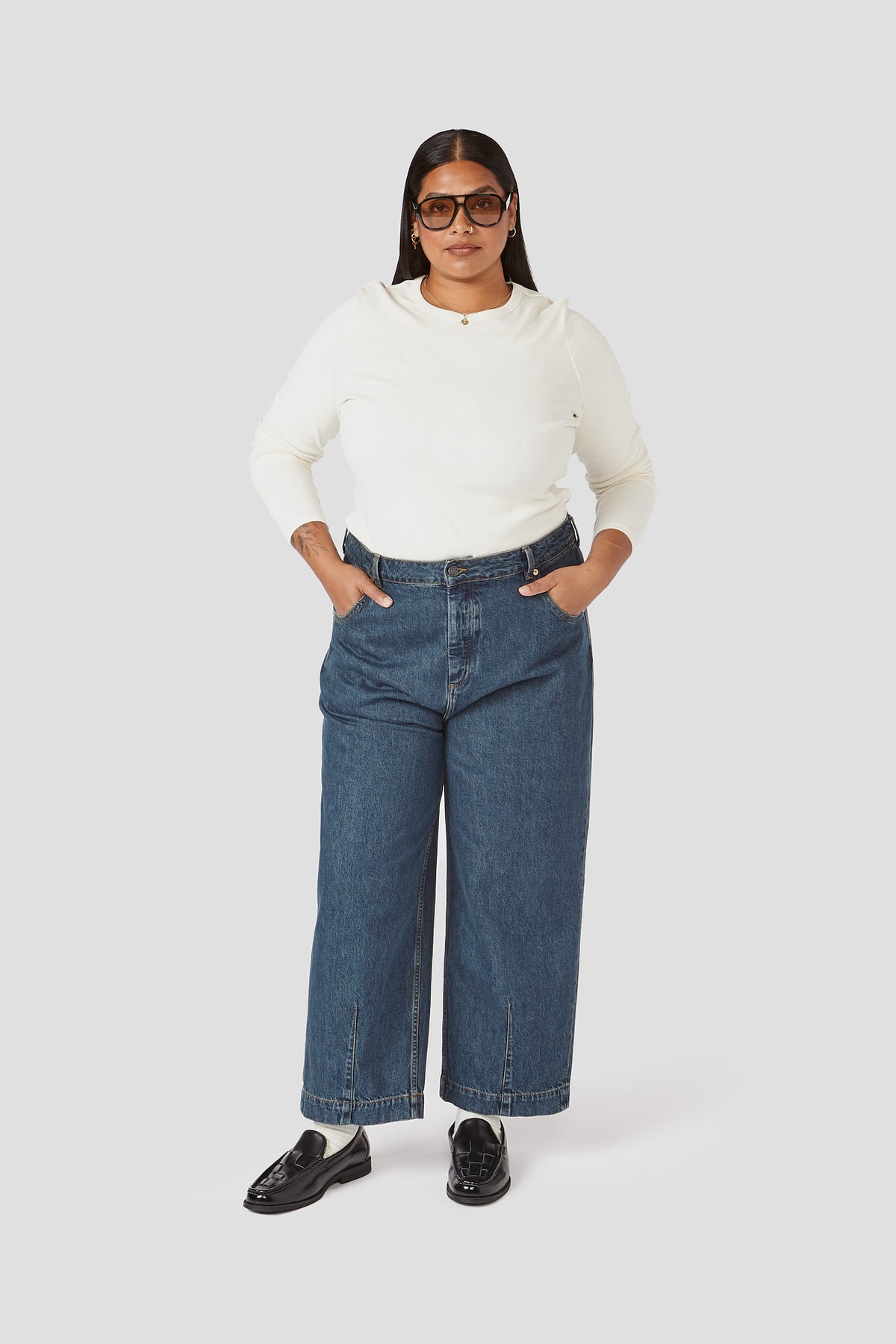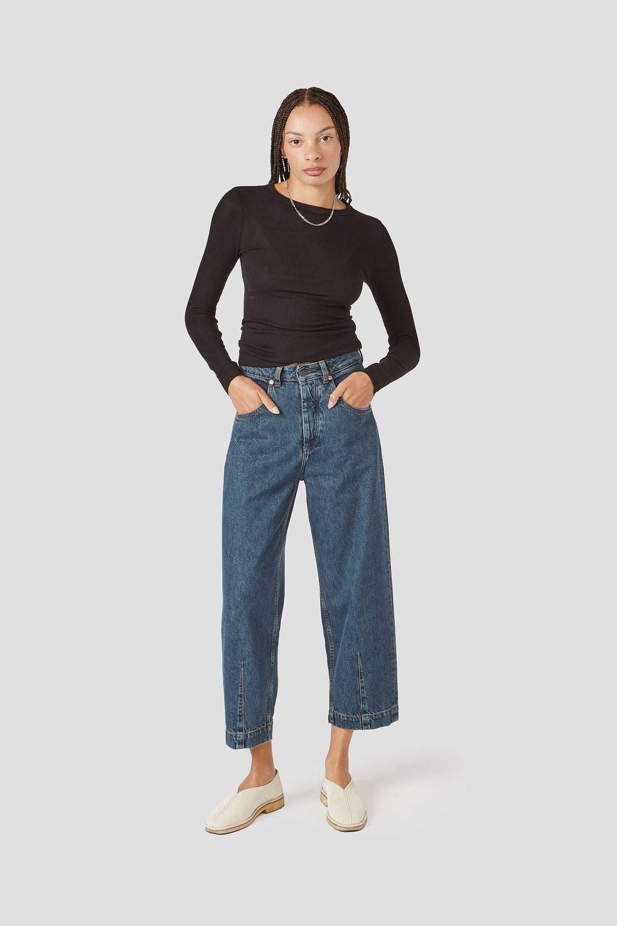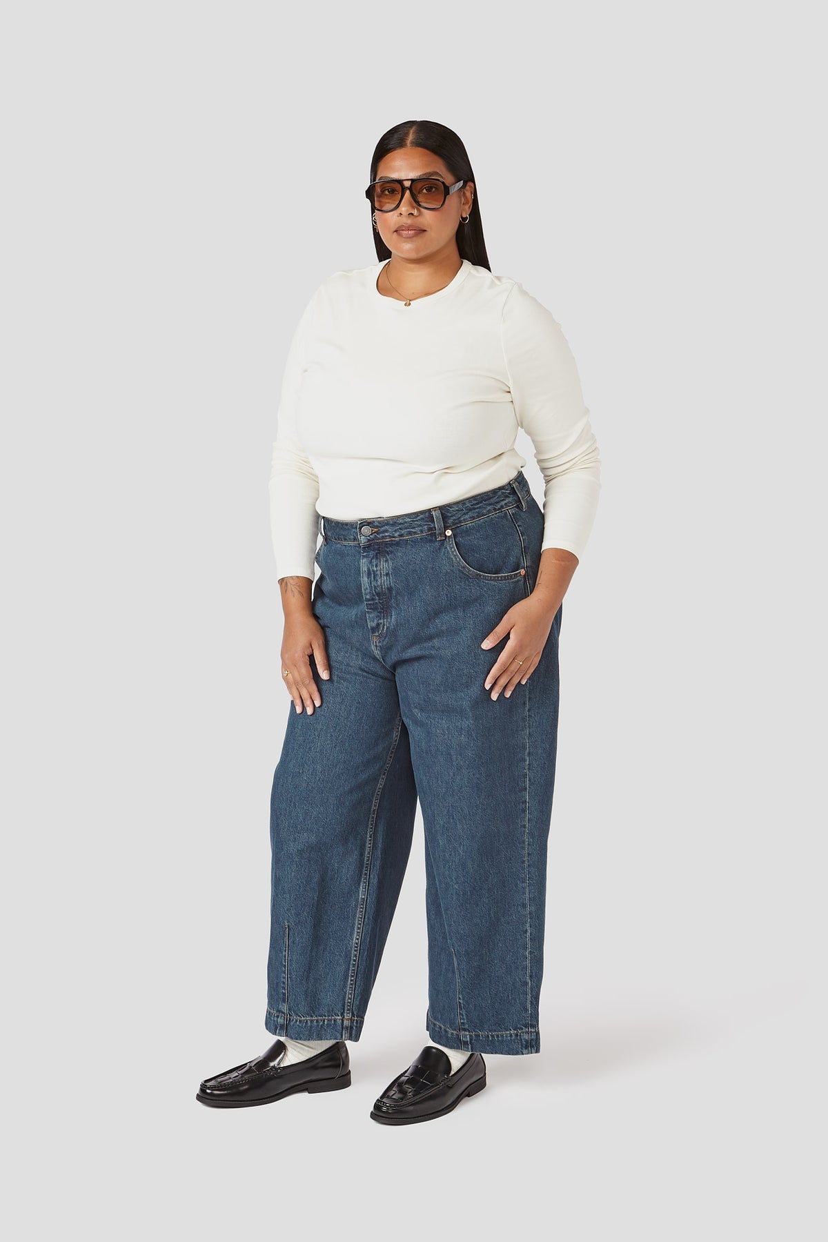 Our best-selling pant, known for its cool, relaxed silhouette and subtly sculpted barrel leg. Cropped at the ankle with single-welt back pockets and a classic button fly, it’s polished, comfortable, and endlessly wearable. Cut from breathable 100% cotton denim that softens beautifully with wear and finished with our signature custom hardware.